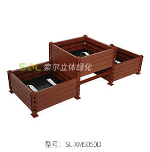 利用立體鞍式綠化箱SL-XA5060、三層立體鞍式綠化箱SL-XA6533,配以花草加灌溉系統(tǒng),形成多層的有層次的立體景觀效果。 立體鞍式綠化箱SL-XA5060規(guī)格:500mm*300mm*250mm(長*寬*高)。