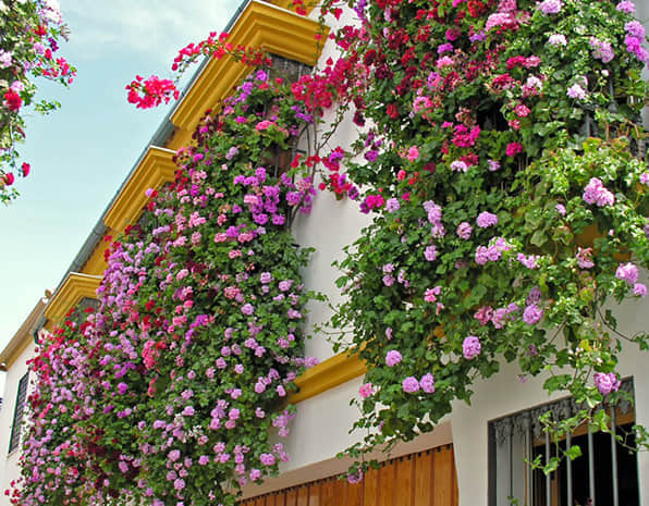 窗臺美化,考慮到要形成立體景觀及遮擋容器,植物要求以開花植物及藤本植物為主,用時令花草及藤本灌木,形成有層次的五彩繽紛的立體效果。