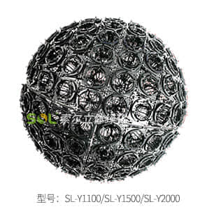 花盆式組合花球,最大處直徑1500mm。 造型由三種組合花盆拼接而成,底下四層皆由9個梯形組合花盆SL-YT5030組成,中間兩層皆由4個弧形組合花盆SL-YH7526組成,頂部一層由2個小弧形組合花盆SL-YH6030組成。